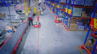 在手动仓库中,我们通常会看到工人随身携带清单,挑选产品,将产品装入购物车,然后将它们运送到装运码头;但在智能仓库中,订单会自动收到,之后系统确认产品是否有库存。然后将提货清单发送到机器人推车,将订购的产品放入容器中,然后将它们交给工人进行下一步。