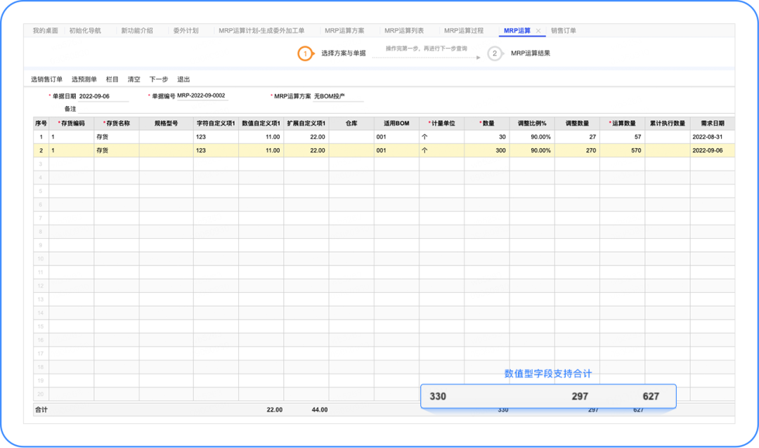 对于同一存货合并选单进行运算的场景,尤其是需要在选单基础上对本次运算数量进行调整时,显示相关数值的合计数量能够大大提升用户的操作效率。
